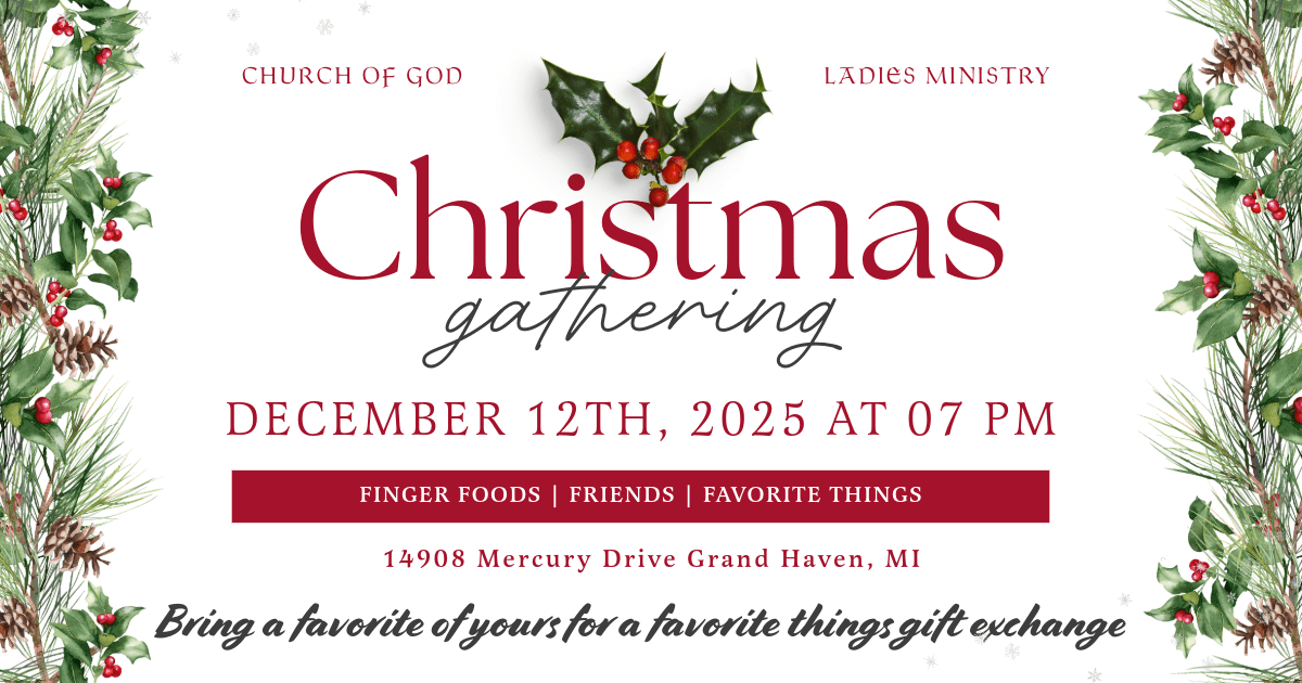 The ladies ministry will have their annual Christmas gathering on Friday the 12th this year at 7pm. The theme this year is Favorite Thing. Click below for more details: